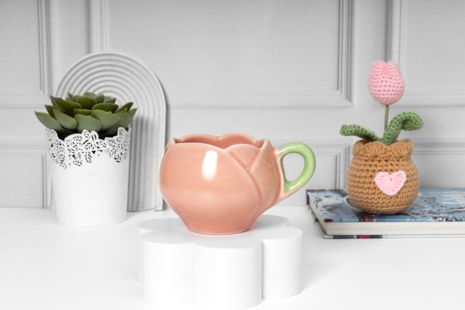 • Ceramic tulip mug for coffee, tea, or hot beverages